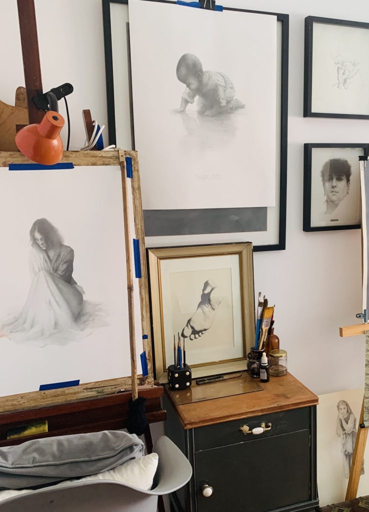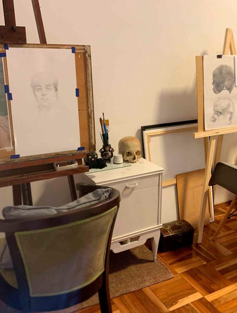 Durante las clases trabajamos con distintas técnicas —como dibujo a carbonilla, grafito, y pintura al óleo— según los intereses y objetivos de cada estudiante.